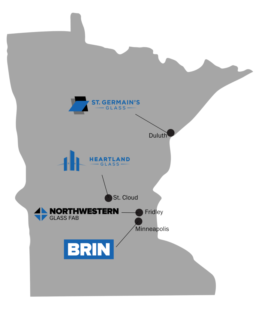 Heartland Glass is a leading glazing partner serving contractors, construction firms, manufacturers, and suppliers across Minnesota and the Upper Midwest. As part of the Brin family of companies—Brin Glass Company, Northwestern Glass Fab, St. Germain’s Glass, and Heartland Glass—we provide full-service glass solutions, from design and fabrication to installation, service, and distribution.