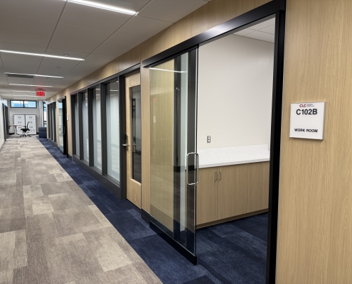 Heartland Glass supplied and installed the full glazing package, including KI wall sliders, numerous borrowed lites, decorative film, and specialty laminated glass featuring graphic elements. Our team quickly adapted to the new slider system and established an efficient process for the large quantity of borrowed lites. By working closely with the project team and leaning on our craftsmanship, we ensured every component aligned with the design intent.