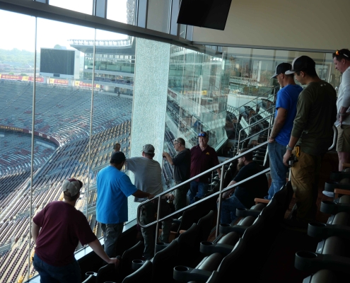 Our team safely removed the damaged glass and installed the new pieces seamlessly, restoring the suites to top condition without disruption to stadium operations.