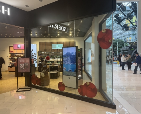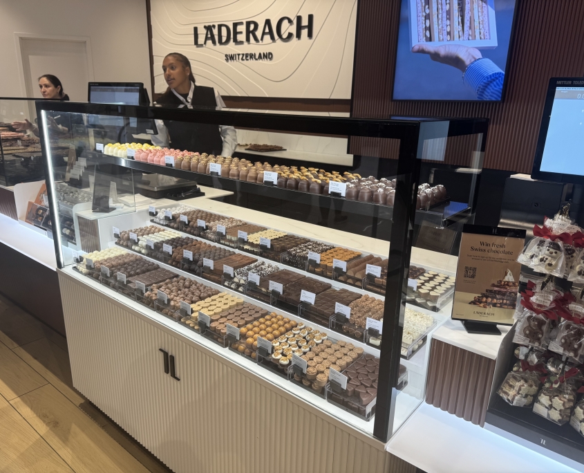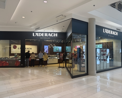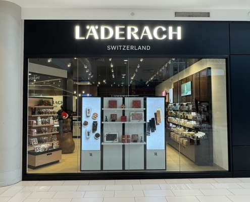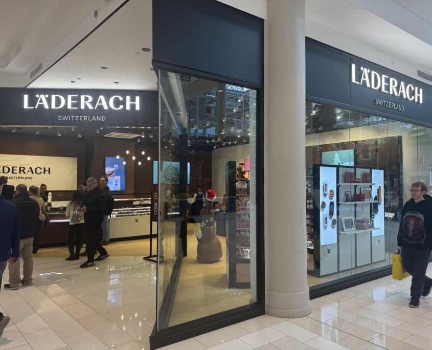 The finished space reflects Läderach’s premium retail experience, with crisp glass lines, inviting transparency, and durable systems built for daily use. Brin Glass delivered the project on time and with precision, helping the tenant open on schedule and make an immediate impact in the local market. The result is a space that’s as refined as the product it showcases.
